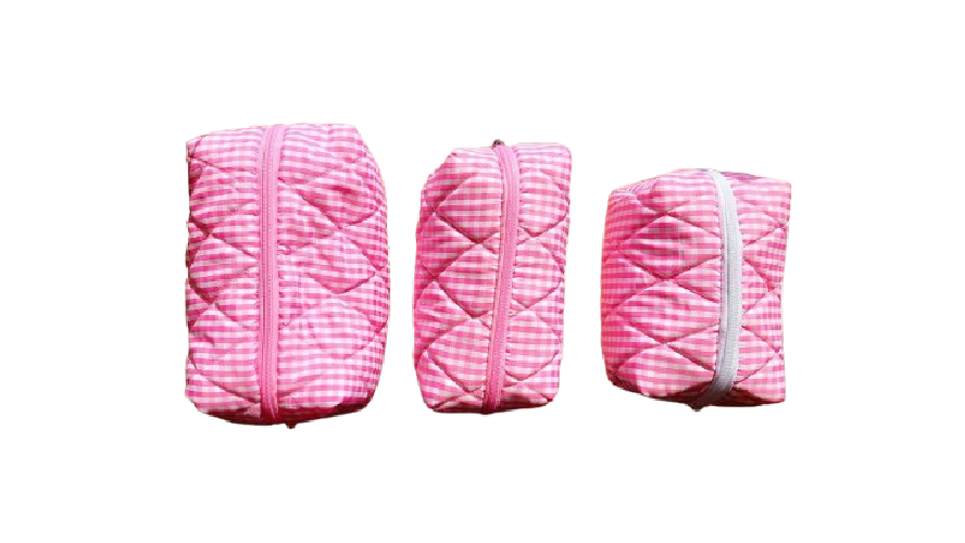 Косметички Ecosan созданы для тех, кто ценит порядок, эстетику и осознанный подход к выбору вещей. Изготовленные из хлопковой ткани, они приятны на ощупь, хорошо держат форму и подходят для ежедневного использования. Стёганная текстура и аккуратный клетчатый дизайн делают косметичку не только функциональным, но и эстетичным аксессуаром. Она легко впишется в домашний быт, дорожную сумку или чемодан, помогая удобно организовать косметику, средства ухода и мелкие аксессуары. Благодаря трём размерам — S, M и L — можно подобрать вариант под разные задачи: от компактного хранения базовых средств до вместительной косметички для путешествий. Цветовая палитра в нежных розовых и бежевых оттенках делает изделие универсальным и спокойным по настроению.